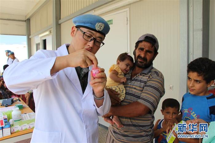 8月19日,在位于黎巴嫩南部的中国维和部队营地医院内,中国维和官兵在义诊活动中告知当地居民用药注意事项。 19日,首个“中国医师节”当天,中国第17批赴黎巴嫩维和多功能工兵分队开放所属一级医院,开展“敬佑生命 大爱无疆”义诊活动,受到当地居民的称赞。 新华社发(杨双权摄) (来源:新华网,2018年8月21日)
