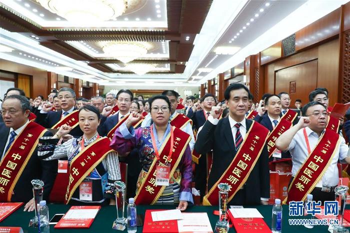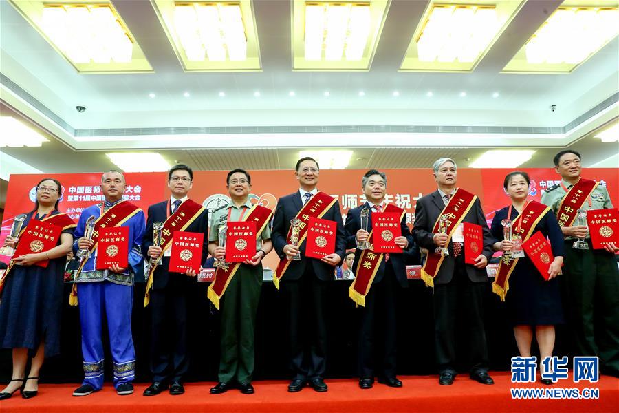 8月19日,第11届“中国医师奖”获得者等参加首个“中国医师节”庆祝大会暨第11届“中国医师奖”颁奖大会。 当日,首个“中国医师节”庆祝大会暨第11届“中国医师奖”颁奖大会在北京举行,80多位来自全国各地的医师获颁“中国医师奖”。 新华社记者 张玉薇 摄