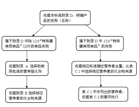 例:婴儿配方食品中锌的含量,应符合《婴儿配方食品》(GB10765-2010) 中锌的最大值和最小值要求,生产单位可以根据产品的自身特性和本标准要求选择使用表C.1中列出的一种或多种锌的化合物,包括硫酸锌、葡萄糖酸锌、氧化锌、乳酸锌、柠檬酸锌、氯化锌、乙酸锌。其他锌的化合物则不能在婴儿配方食品中使用。