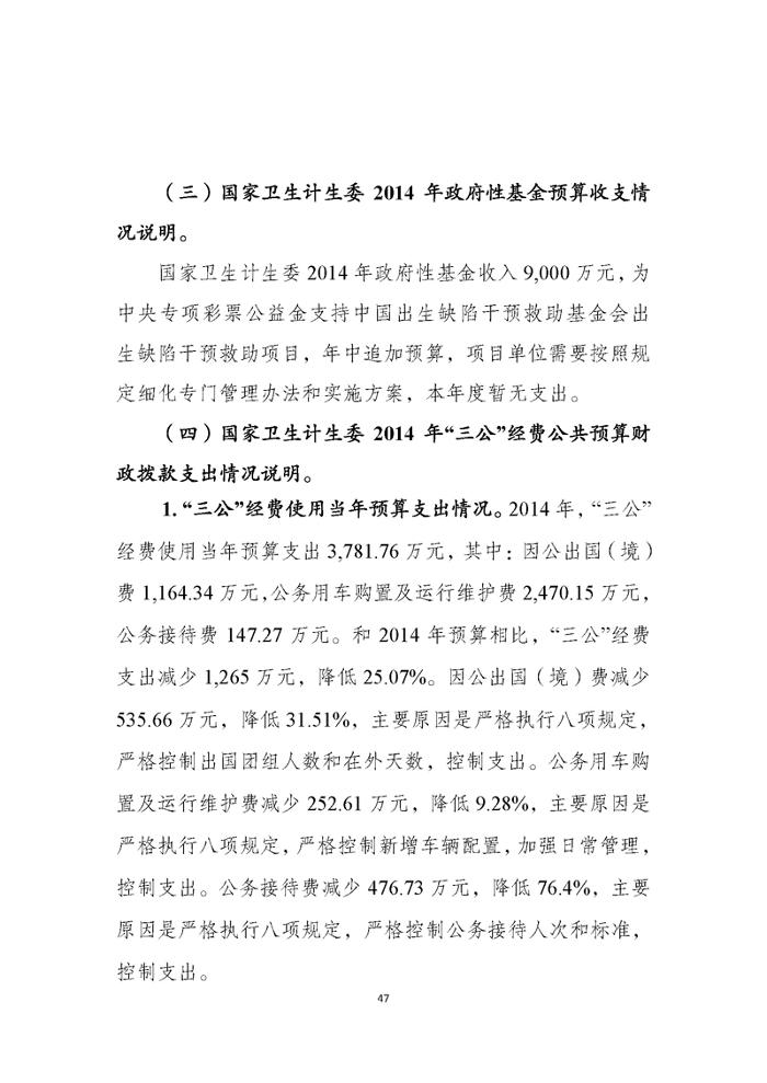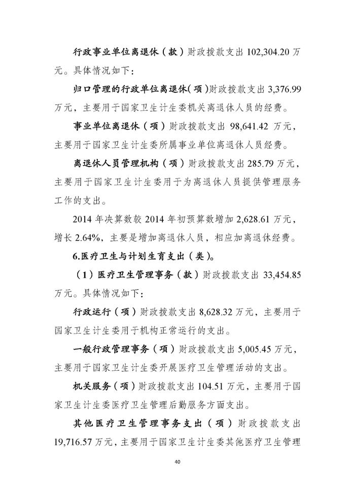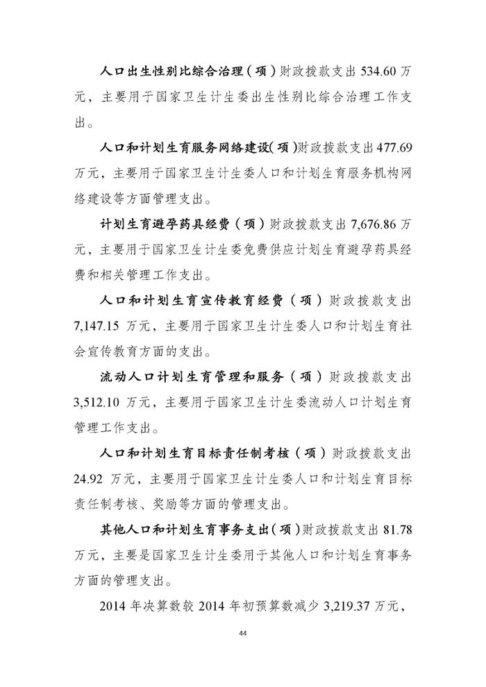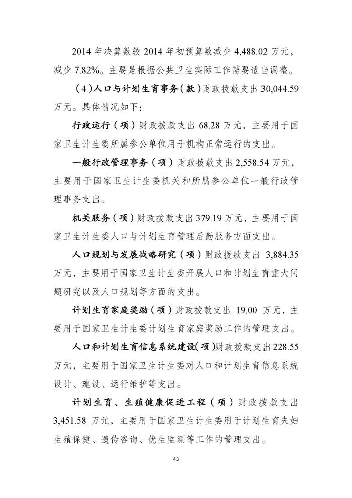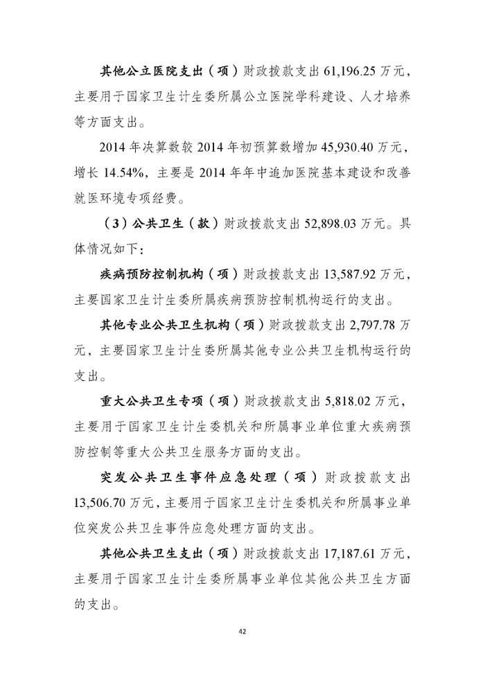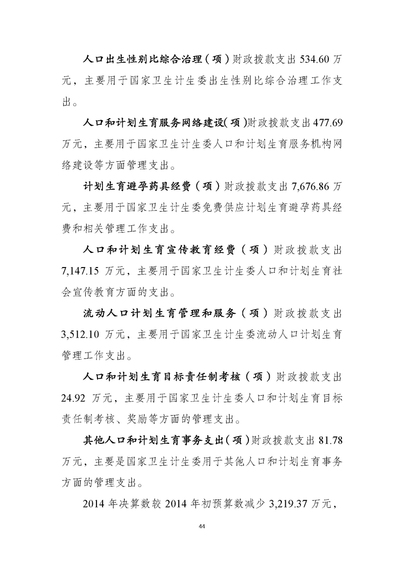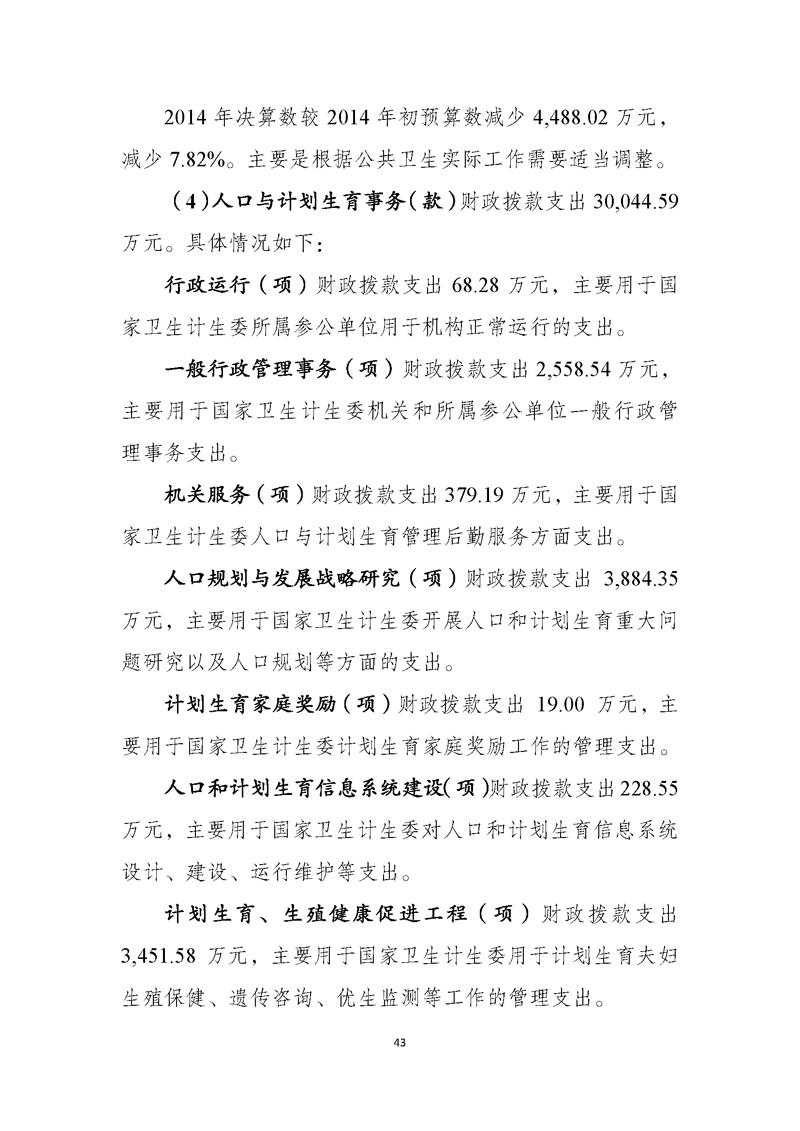 国家卫生计生委2014年部门决算