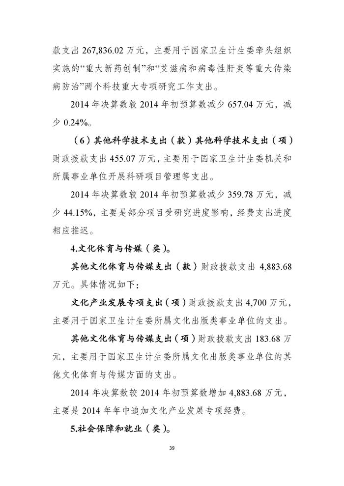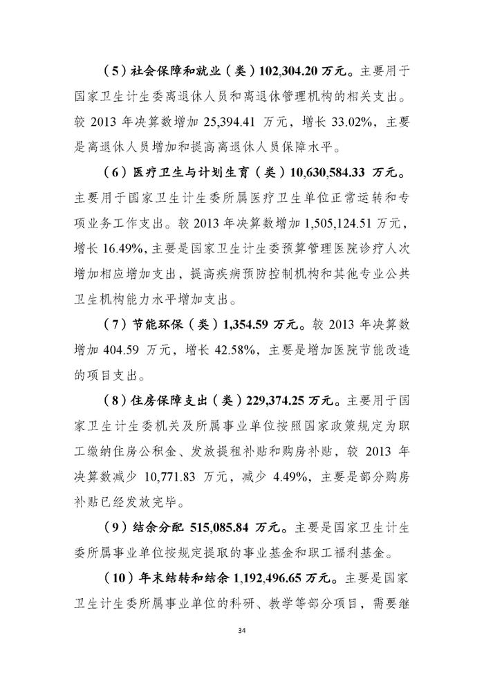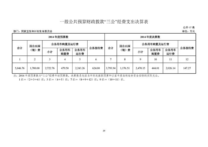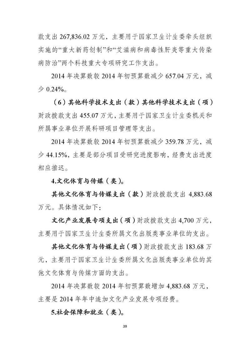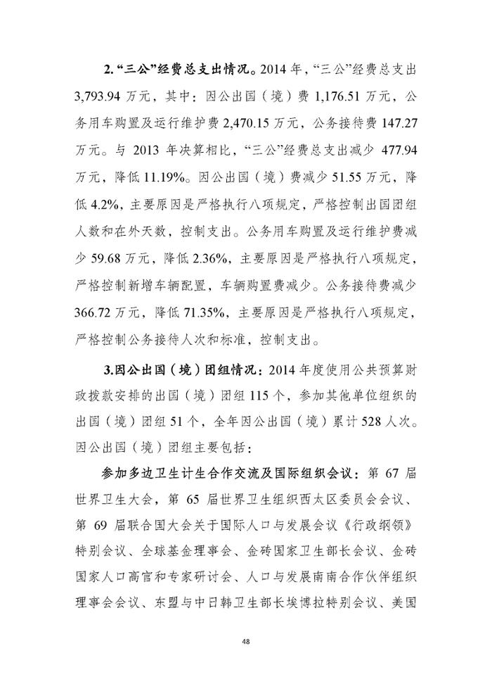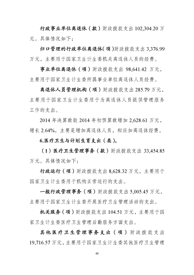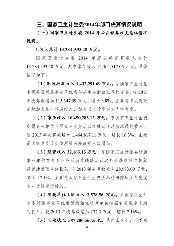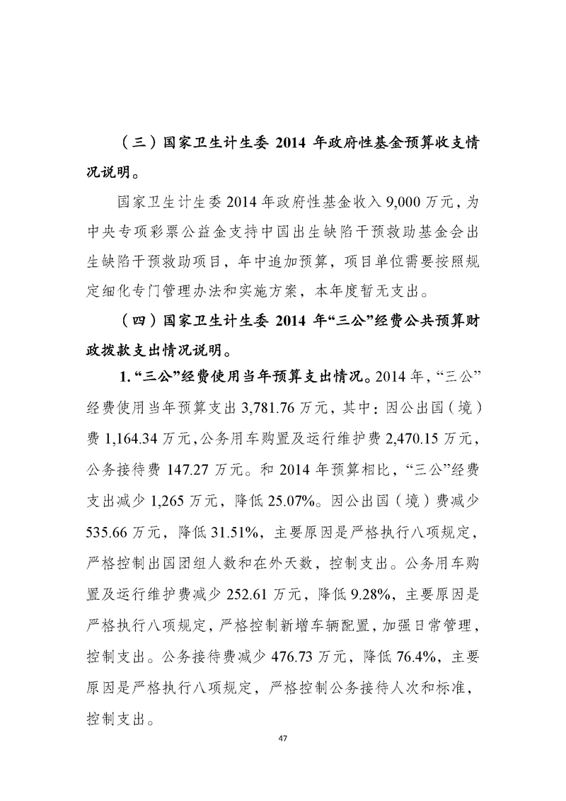国家卫生计生委2014年部门决算