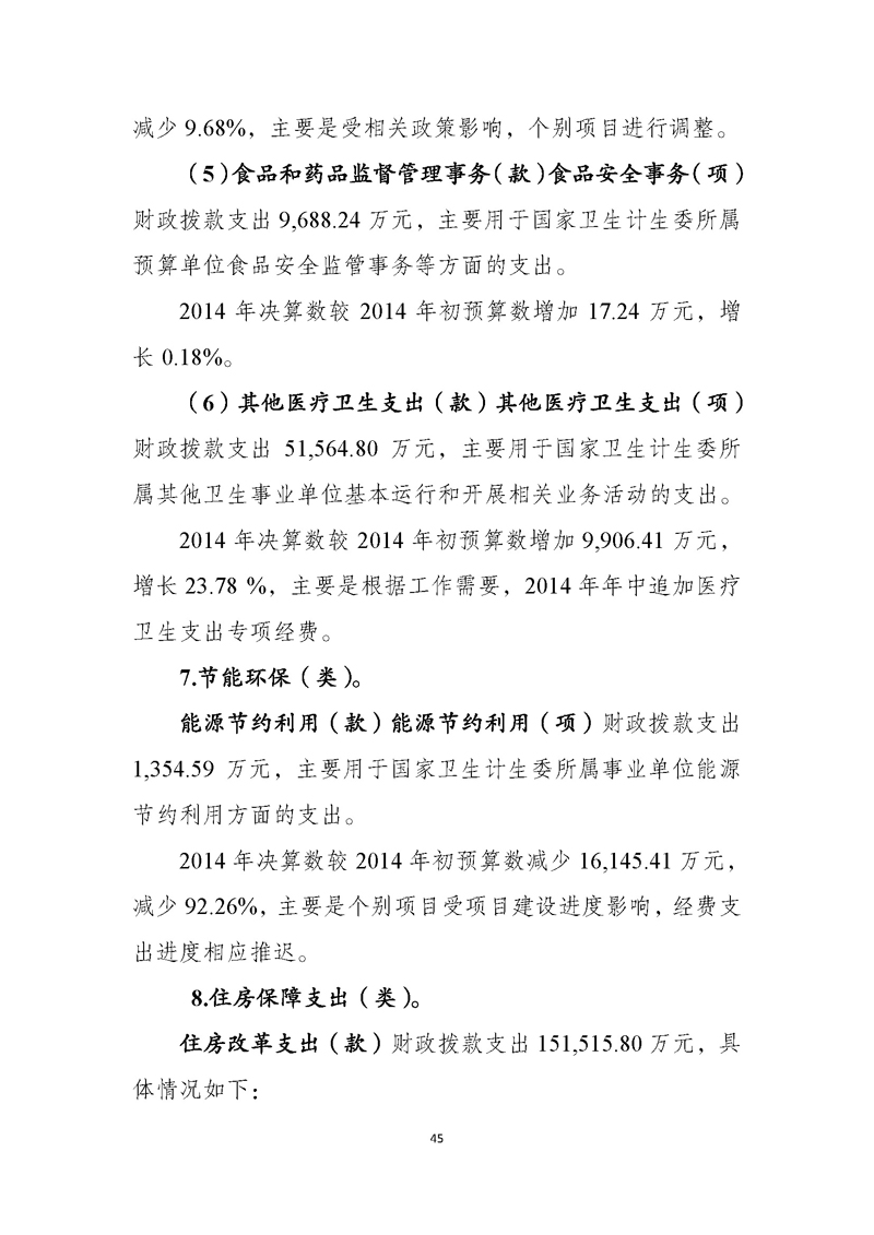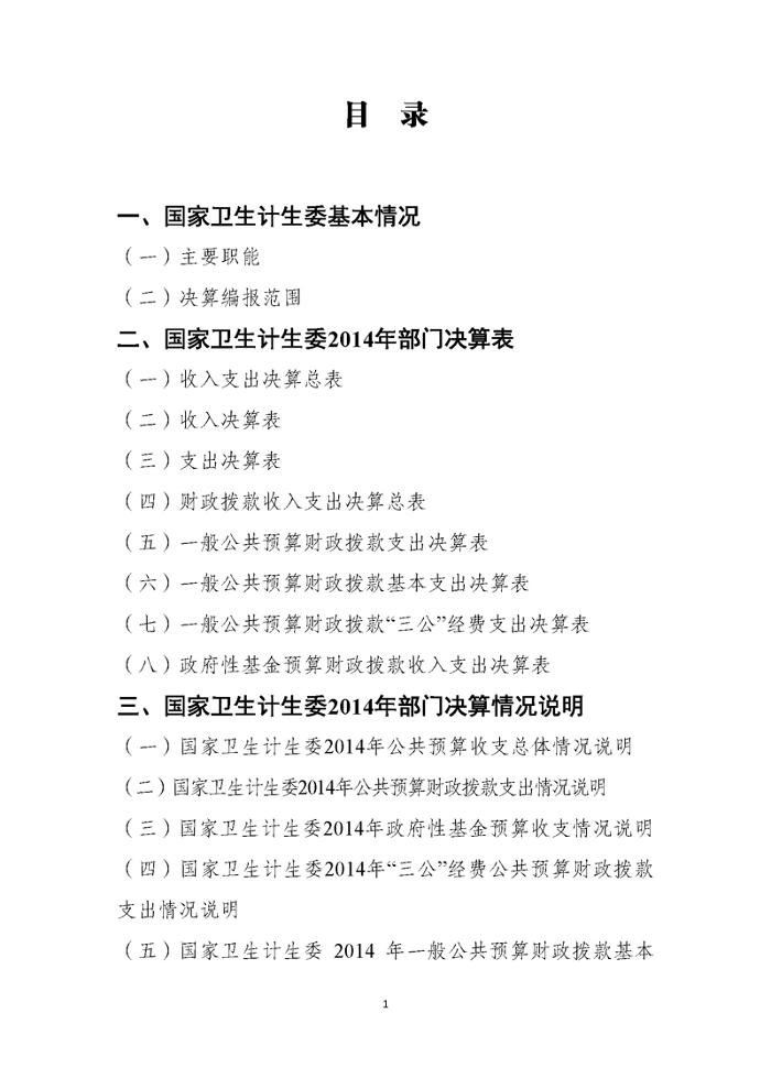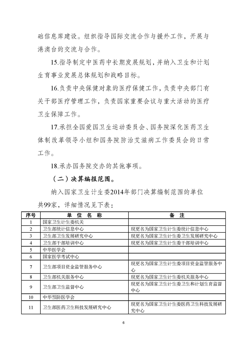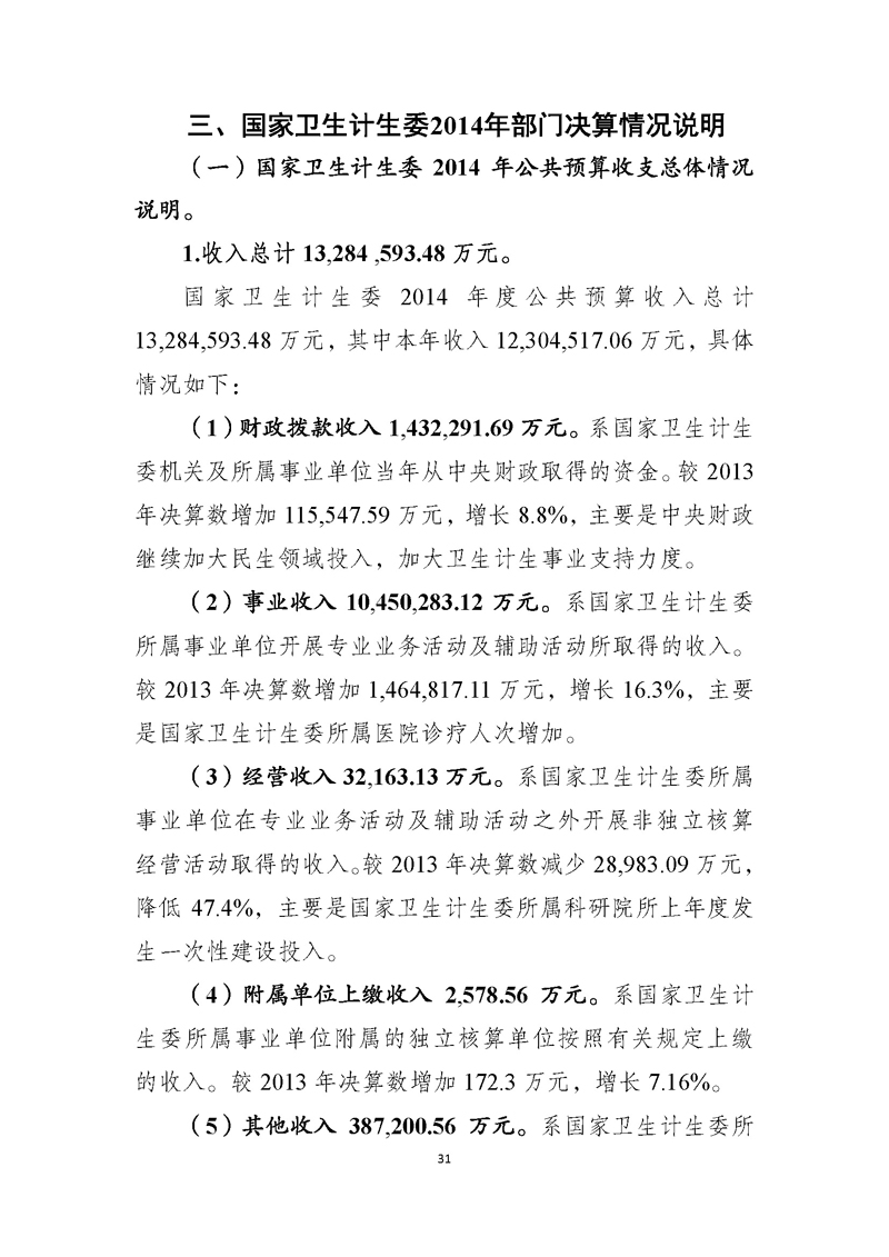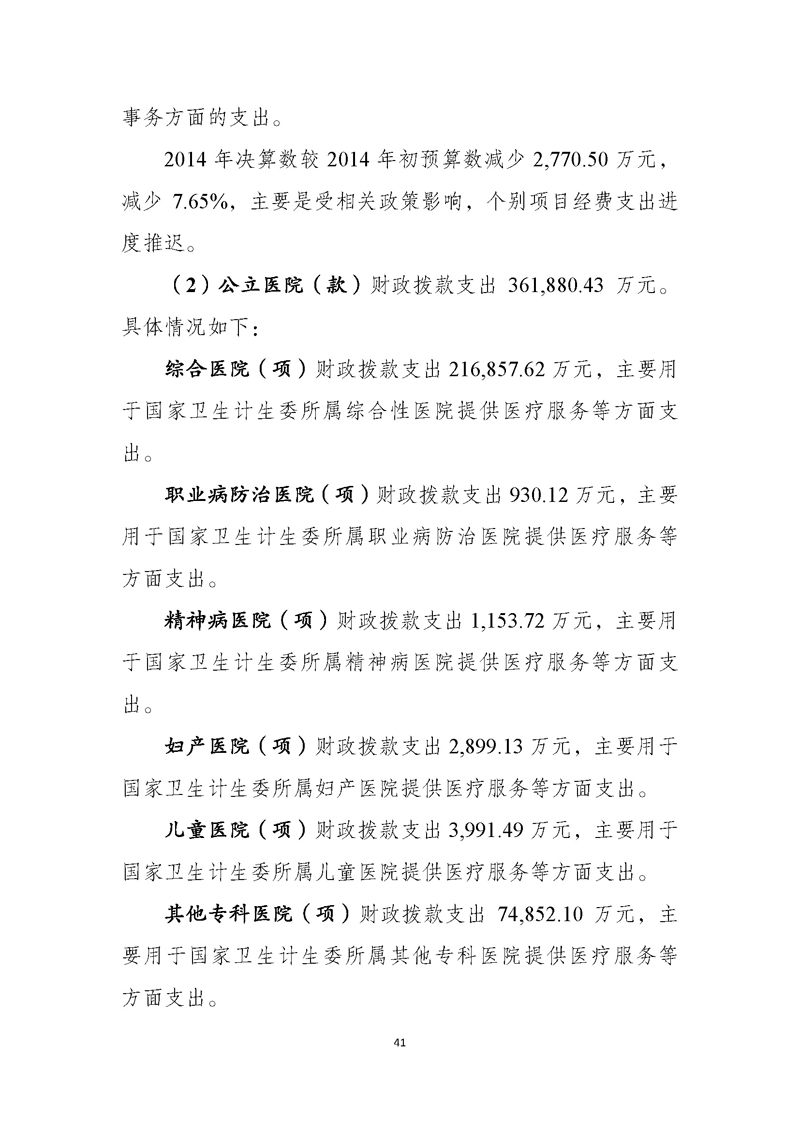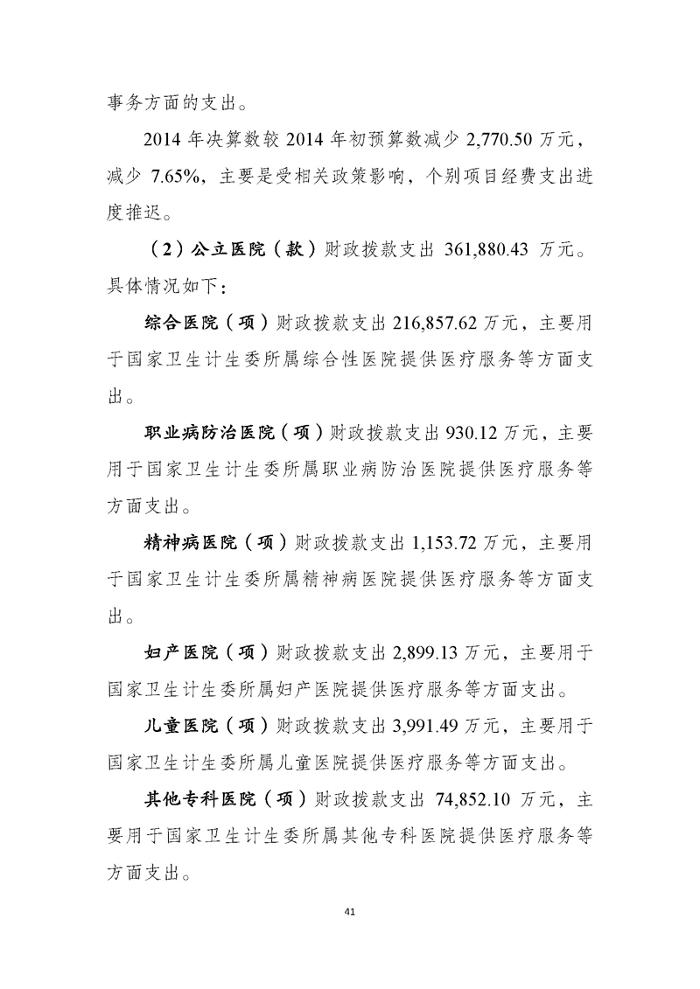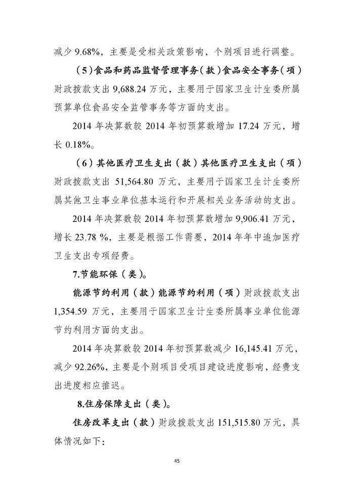 国家卫生计生委2014年部门决算