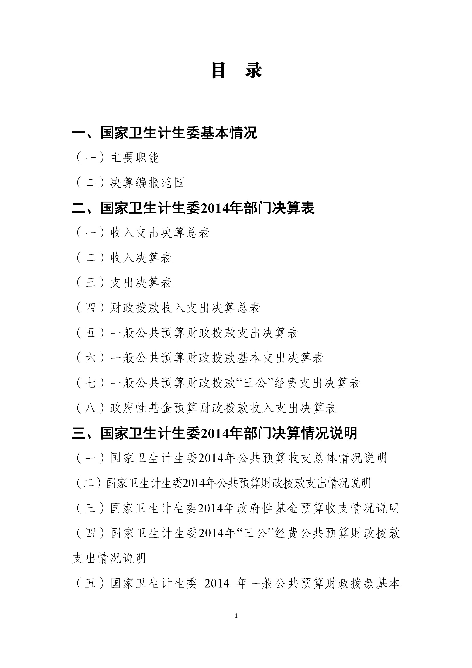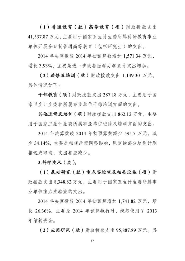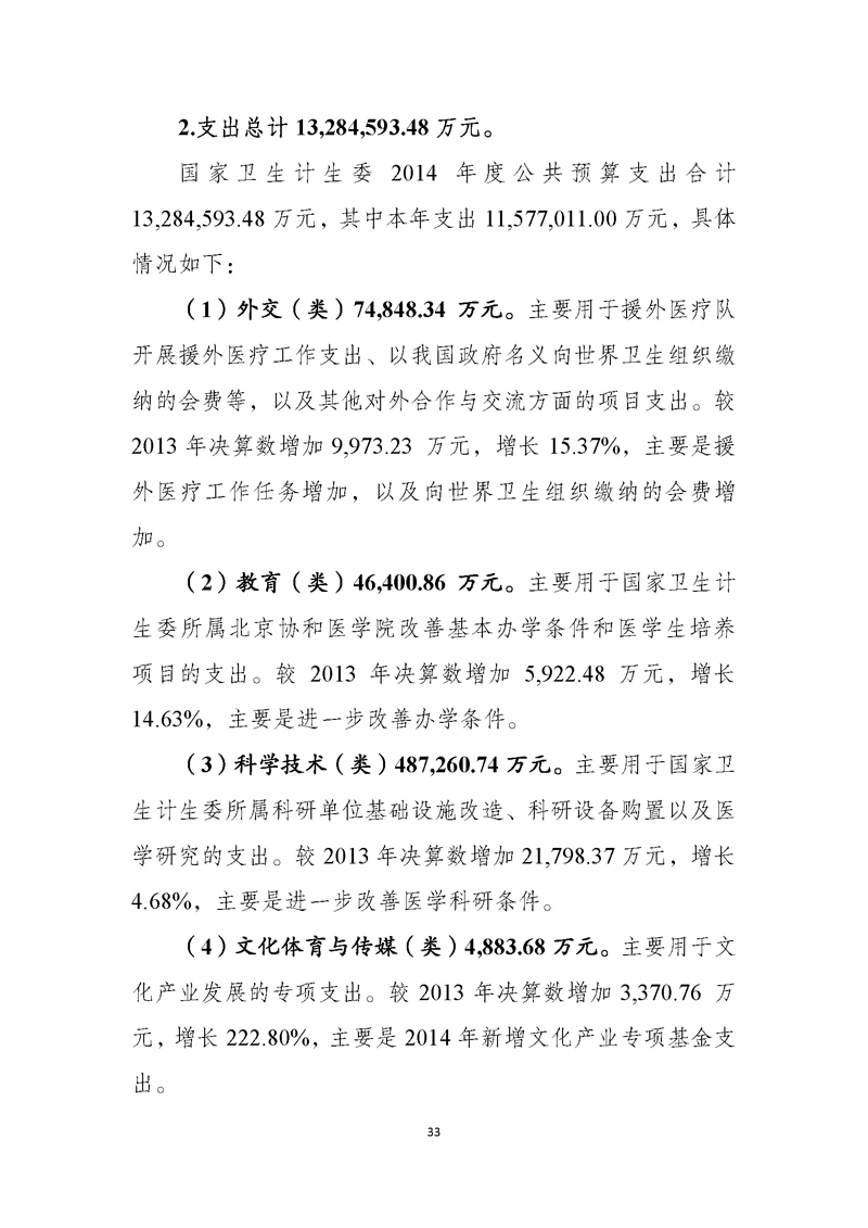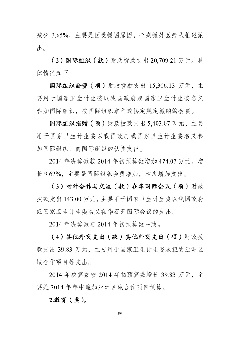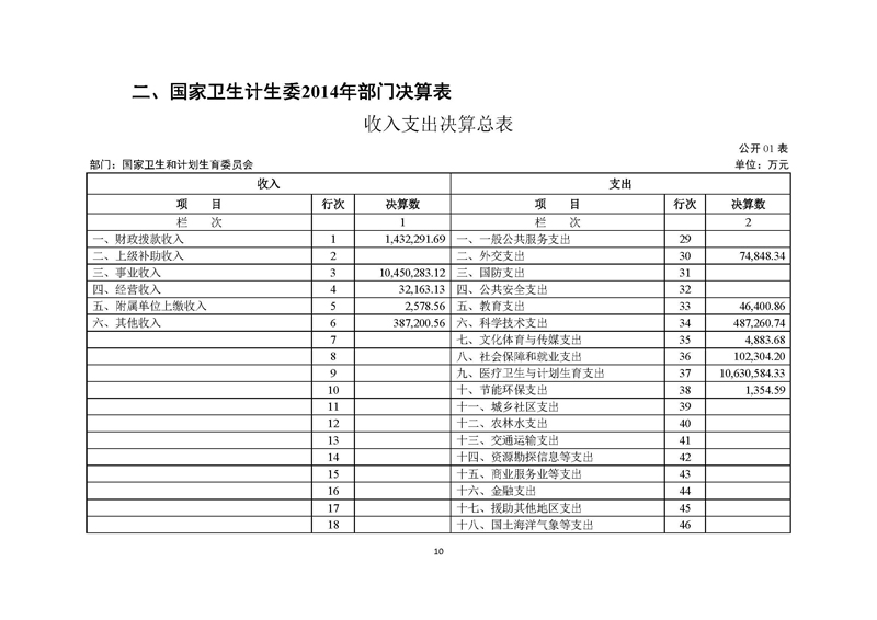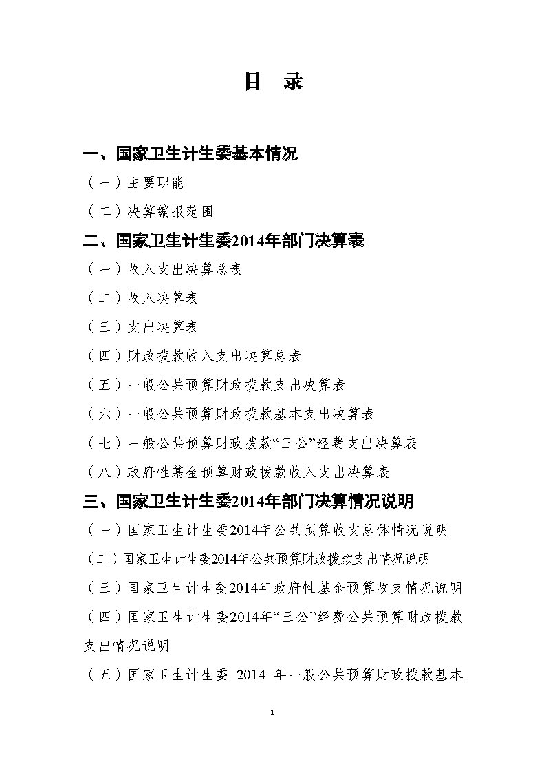 国家卫生计生委2014年部门决算