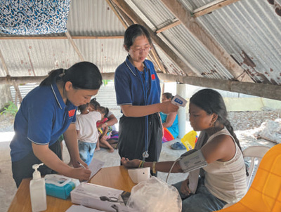 第二批援基里巴斯医疗队在首都塔拉瓦的社区开展义诊活动。第二批援基里巴斯医疗队供图