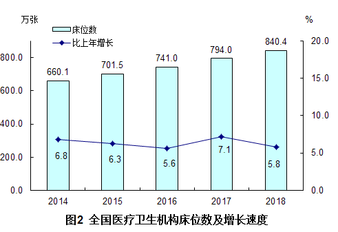 (一)医疗卫生机构总数。2018年末,全国医疗卫生机构总数达997434个,比上年增加10785个。其中:医院33009个,基层医疗卫生机构943639个,专业公共卫生机构18034个。与上年相比,医院增加1953个,基层医疗卫生机构增加10615个,专业公共卫生机构减少1862个(见表1)。
