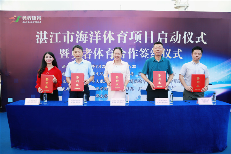 为响应“健康中国”国家战略,促进全民健身、全民健康,把体育产业作为推动经济社会持续发展的重要力量,助力湛江海洋经济强市建设。7月25日,由广东省湛江市文化广电旅游体育局、湛江市科学技术协会指导,湛江市大航海海洋科技教育促进中心、广东勇者体育股份有限公司主办的“湛江市海洋体育项目启动仪式暨勇者体育合作签约仪式 ”在湛江市霞海港游艇码头AC游艇会举行。