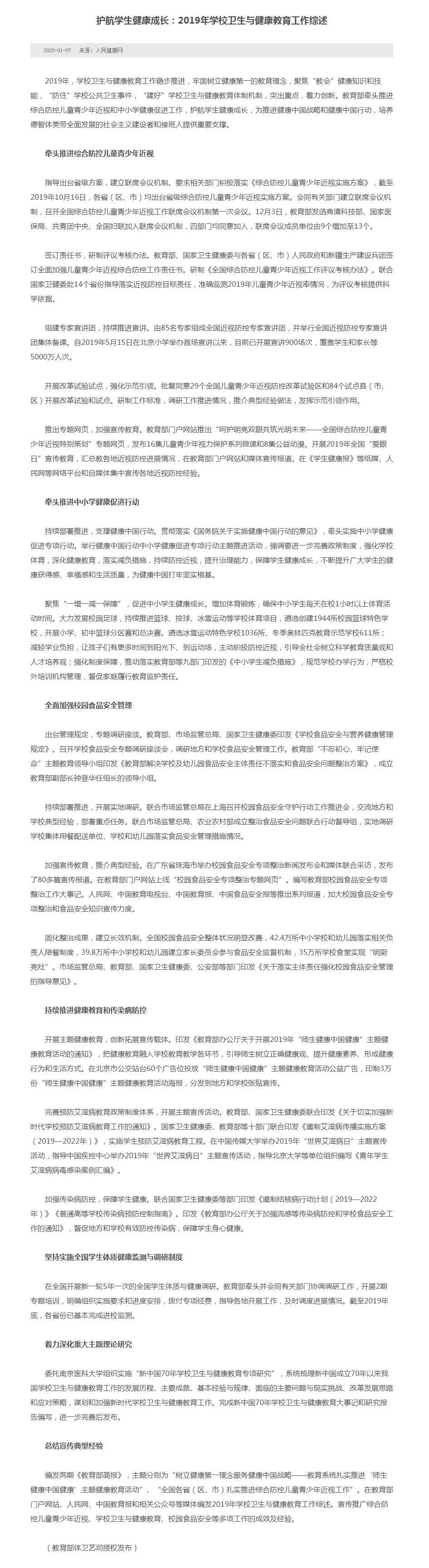 护航学生健康成长:2019年学校卫生与健康教育工作综述