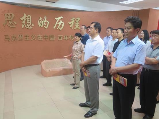 马奔同志带领全体党员干部观看了展览馆的历史图片、书籍报刊、展板雕塑、手稿档案等。在展览馆主展厅、学术成果陈列厅、珍贵藏品展示厅,马奔同志不时驻足,认真听取介绍,详细询问情况,并与同志们交流感想体会。