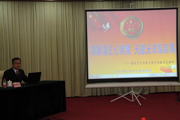 2014年3月19日,机关服务局纪委针对机关服务工作行业特点,邀请全国检察机关“预防业务标兵”、北京市检察机关“十佳职务犯罪预防工作能手”、北京市大兴区人民检察院李晓文检察官进行以《清廉清正心常惬 无欲无求品自高》专题廉洁从业教育课。服务局党委副书记、纪委书记杜新萍主持,党委书记武家华、局长胡光等局领导及全体干部职工参加了教育课。