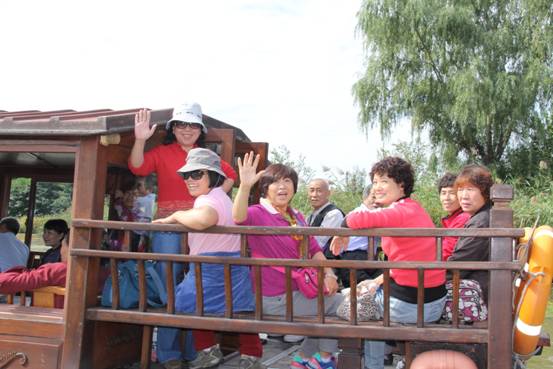 老同志集体乘船游览了风景如画的汉石桥湿地,在绿树成荫的林间小道漫步闲谈,体验了菜式丰富的农家乐,活动过程中老同志们喜笑颜开,谈笑风生,一派温馨和谐的气氛。