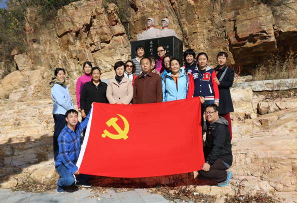 清晨,第一党支部党员和入党积极分子一行17人来到位于平谷黄松峪的塔洼村,在一条幽静的山谷中,隐藏着抗日战争时期八路军的卫生所,这是八路军九十四军区在此成立的第二医疗队。大家在行进途中,了解了发生在山谷里的英雄事迹,当年八路军和游击队的伤病员就是在这个卫生所疗伤治病,待身体康复后重返战场。由于叛徒告密,敌人包围了山谷,一位在此养伤的连长贺明登,不顾伤情带领医护人员和伤病员与敌人进行了殊死搏斗,终因寡不敌众,我方四百多名八路军伤病员和九十多名游击队员全部壮烈牺牲。为了纪念英烈们,后人把卫生所所在的山洞命名为“将军洞”,并树立了纪念碑供后世瞻仰。