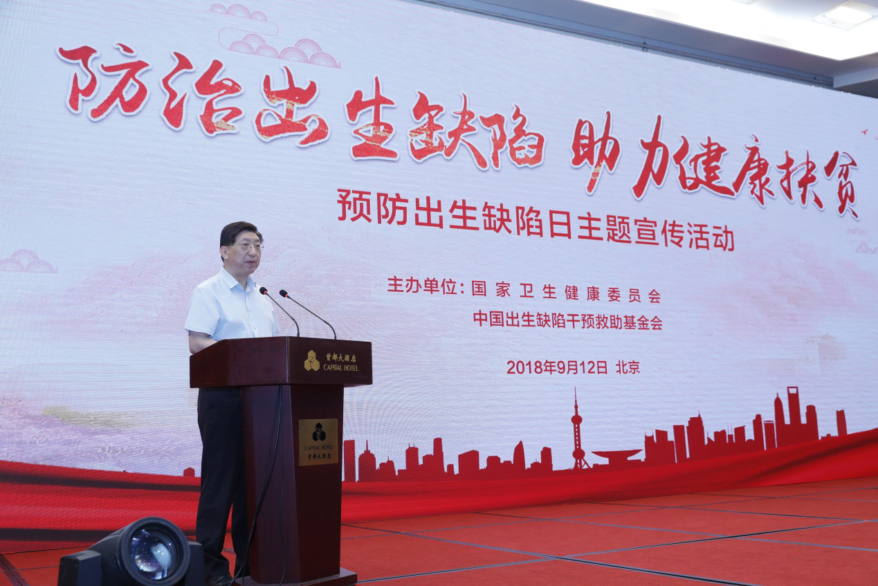 9月12日,国家卫生健康委联合中国出生缺陷干预救助基金会在北京举办预防出生缺陷日主题宣传活动,活动主题为“防治出生缺陷,助力健康扶贫”。九、十届全国人大常委会副委员长、中国出生缺陷干预救助基金会理事长蒋正华,国家卫生健康委副主任曾益新出席活动并讲话。
