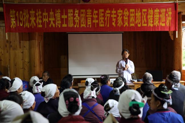 广西是全国脱贫攻坚的主战场之一,如期实现脱贫攻坚的任务十分繁重。加强健康促进与宣传教育,是防止“因病致贫 因病返贫”的重要途径。青年是经济社会发展的生力军和中坚力量,应该在维护贫困地区群众健康、助力脱贫攻坚中发挥示范作用。参与本次活动的主力军是第19批来桂中央博士服务团和区直医疗机构青年医疗专家。他们分别是:第19批来桂中央博士服务团副秘书长、北京儿童医院科研处处长、主任医师、邰隽博士,北京协和医院内分泌科副主任医师、许岭翎博士,中国中医科学院广安门医院副主任医师、王煜明博士,北京医院心血管内科副主任医师、钟优博士,以及广西医科大学附属口腔医院教授曾晓娟、自治区疾病预防控制中心结核病防制所主任医师刘飞鹰、广西中医药大学第一附属医院眼科主治医师赖伟霞。这批术业专攻的青年专家们走进三江医疗卫生机构、学校、贫困村,授医技、讲健康、访贫问寒,成为侗乡一道守护群众健康的亮丽风景线。