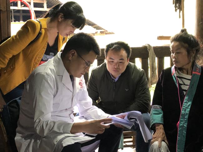 4月29日,博士团专家们前往三江两个最大的侗族村寨,看望 “因病致贫 因病返贫” 的10户人家,给予健康指导。