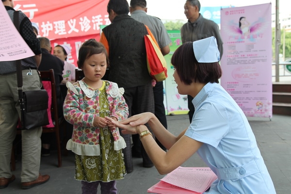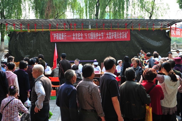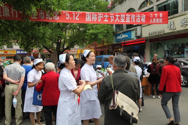 5月7日,绵阳市卫生局、市护理学会组织开展了护理健康行——纪念“5·12”国际护士节大型宣传活动,全市二级以上医疗机构以多种形式为群众进行义诊和护理服务、宣传健康保健知识。