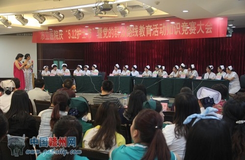 5月9日晚,赣州市立医院举行了庆“5·12护士节”暨党的群众路线教育实践活动知识竞赛大会。大会现场举行了优秀护士颁奖仪式、党的群众路线教育实践活动知识竞赛、医院护士自编自演的文艺表演,全院300多名护士和来宾欢聚一堂喜迎护士自已的节日。今年5月12日是第103届国际护士节,主题是“护士:变革的力量,重要的健康资源”。(信息来源:中国赣州网)