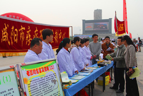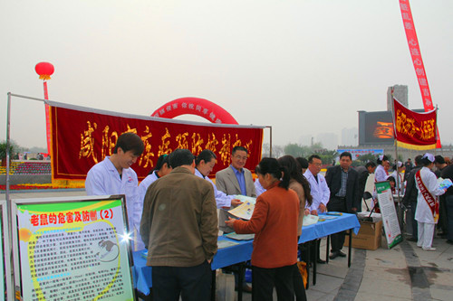 在现场活动中,咸阳市疾控中心展台接待前来咨询的群众300余人,摆放宣传展板6块、防治“四害”药物10余种,发放防治“四害”知识、禽流感预防知识、手足口知识、狂犬病知识、春季防病小窍门等宣传彩页5种2000余份。