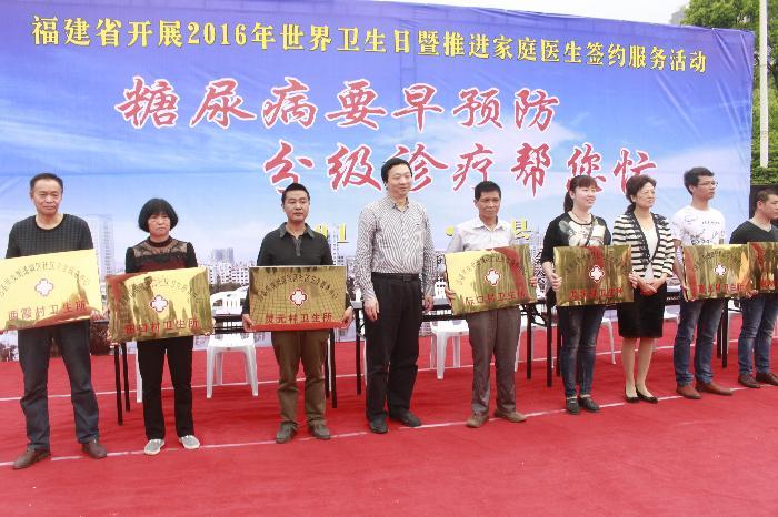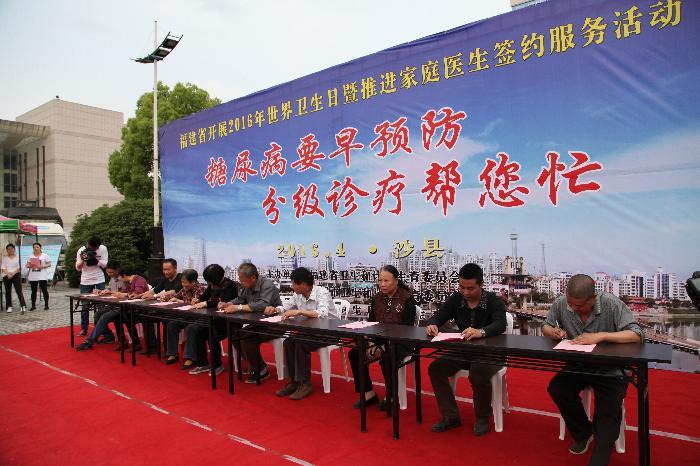 4月7日是世界卫生日,福建省卫生计生委、三明市卫生计生委联合在沙县举办“2016年世界卫生日暨推进家庭医生签约服务活动”主题宣传,三明市卫生计生委主任包著彬主持,省卫生计生委党组成员、副主任陈辉,三明市副市长张丽娟出席活动。