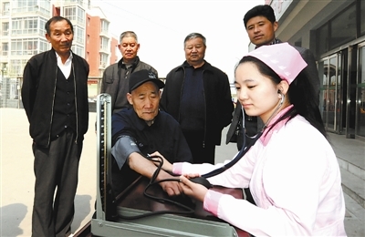 4月7日,河北省邢台市桥东区计划生育服务站组织医护人员走进社区开展世界卫生日义诊宣传活动,为社区居民免费检查身体,宣传病媒生物防治知识。4月7日是世界卫生日,今年世界卫生日的主题是“病媒传播的疾病”。