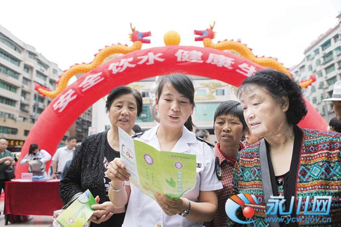 重庆市永川区卫生监督所的工作人员向市民讲解饮用水卫生知识