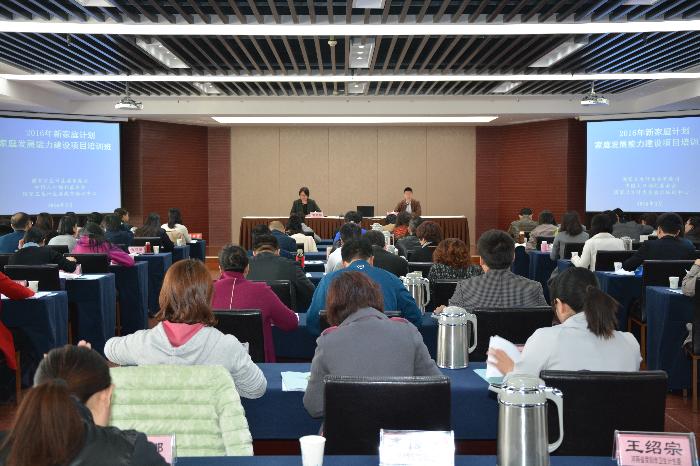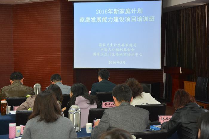 为贯彻落实《关于开展“新家庭计划——家庭发展能力建设”项目试点工作的通知》(国卫办家庭函﹝2014﹞388号)要求,进一步推进“新家庭计划——家庭发展能力建设”项目工作,国家卫生计生委家庭司于3月28日至29日在江苏省南京市举办2016年全国“新家庭计划——家庭发展能力建设”项目第一期培训班。