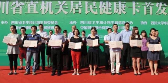 为落实《实施意见》,7月15日,四川省卫生计生委与中国银行四川分行联合在四川大学华西医院举行“四川省直机关单位居民健康卡首发仪式”,正式启动为省直机关单位职工的居民健康卡发放工作。四川省卫生计生委主任、省医改办主任沈骥出席并做工作部署,来自国家卫生计生委统计信息中心、四川省卫生计生委、省直机关单位、成都市卫生计生委等单位,以及公立医院代表参加仪式。截至目前,四川省已在绵阳、雅安、成都、自贡、南充等多个地区制发居民健康卡1000余万张。在成都市,华西医院、省人民医院等12家国家、省级医院和12家市级医院能受理应用居民健康卡,225个省直机关单位的职工信息已采集完毕,将陆续制卡发放。 文件下载:四川省卫生计生委关于加快推进医疗健康服务“一卡通”的实施意见2016.pdf