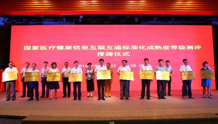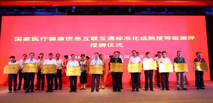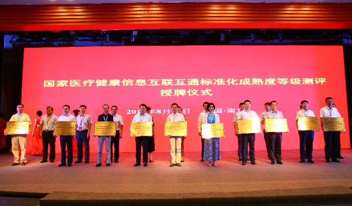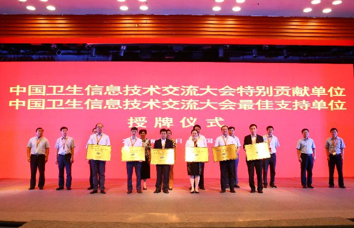 开幕式为国家医疗健康信息互联互通标准化成熟度等级测评、居民健康卡普及应用先进单位及中国卫生信息技术交流大会特别贡献单位和最佳支持单位授牌。