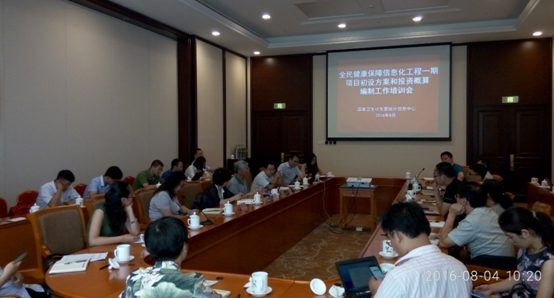 为做好全民健康保障信息化工程一期项目初设方案和投资概算报告编制工作,国家卫生计生委统计信息中心于2016年8月4日在北京组织召开项目初设方案和投资概算编制工作培训会。来自国家卫生计生委规划信息司、财务司、体改司、应急办、疾控局、医政医管局、基层司、食品司、监督局、药政司、指导司、家庭司、宣传司、科教司,中国疾控中心、国家卫生计生委卫生计生监督中心、国家食品安全风险评估中心、中国人口与发展研究中心、国家卫生计生委医院管理研究所、中国医学科学院信息所、中国中医科学院中医药数据中心等有关单位项目编制负责同志40余人参加了此次培训会议。