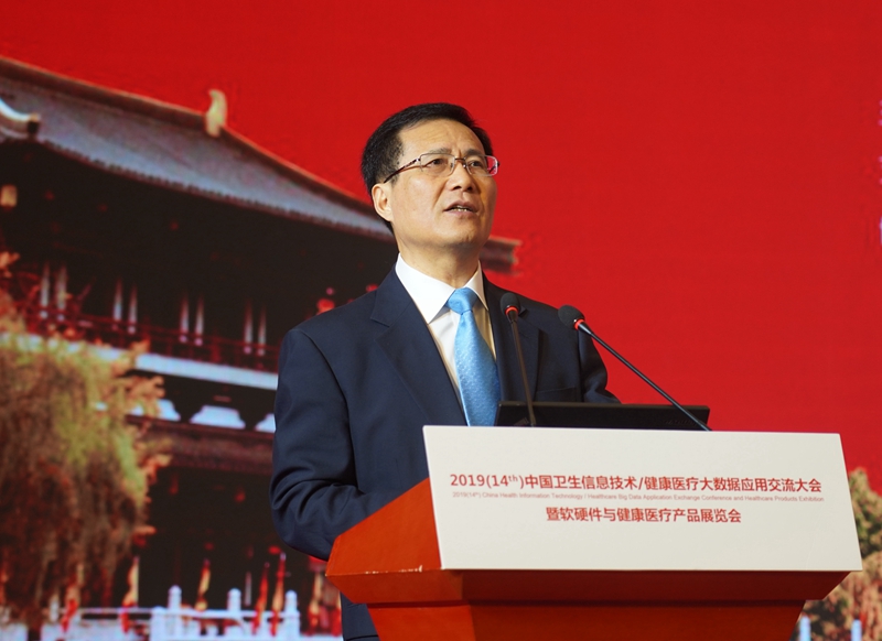 金小桃会长在讲话中就本届大会主题和四大亮点进行了阐述。他说:习近平总书记关于“没有全民健康就没有全面小康”、“实施健康中国战略”、“推进健康医疗大数据应用”等系列重要讲话、指示为人民健康事业指明了方向。党中央国务院对健康中国建设作出了一系列重要决策部署。国家卫生健康委认真贯彻落实习近平总书记系列重要讲话精神和中央决策部署,对大力发展互联网+医疗健康服务、智慧医院建设和国家医疗大数据应用发展作出委省共建和国家试点的决定,并推动取得积极进展。