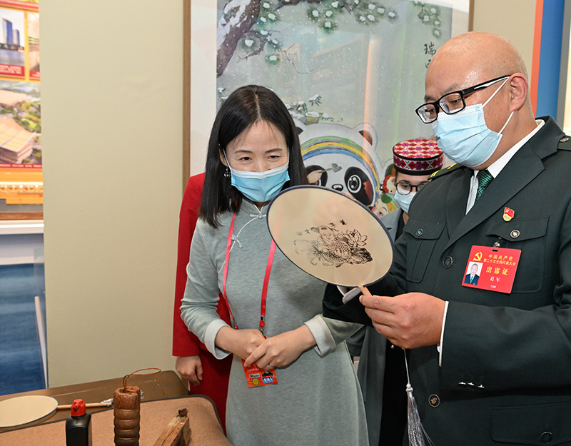 10月17日晚,参加党的二十大的代表们来到北京展览馆参观“奋进新时代”主题成就展。