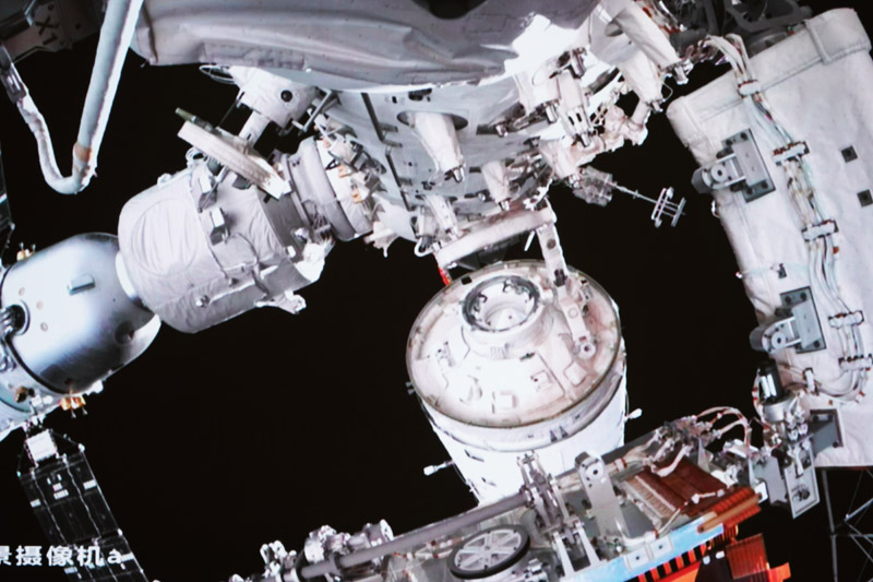 2022年9月30日在北京航天飞行控制中心拍摄的问天实验舱转位画面。这是问天实验舱与天和核心舱分离,采用平面转位方式进行转位。新华社记者郭中正摄