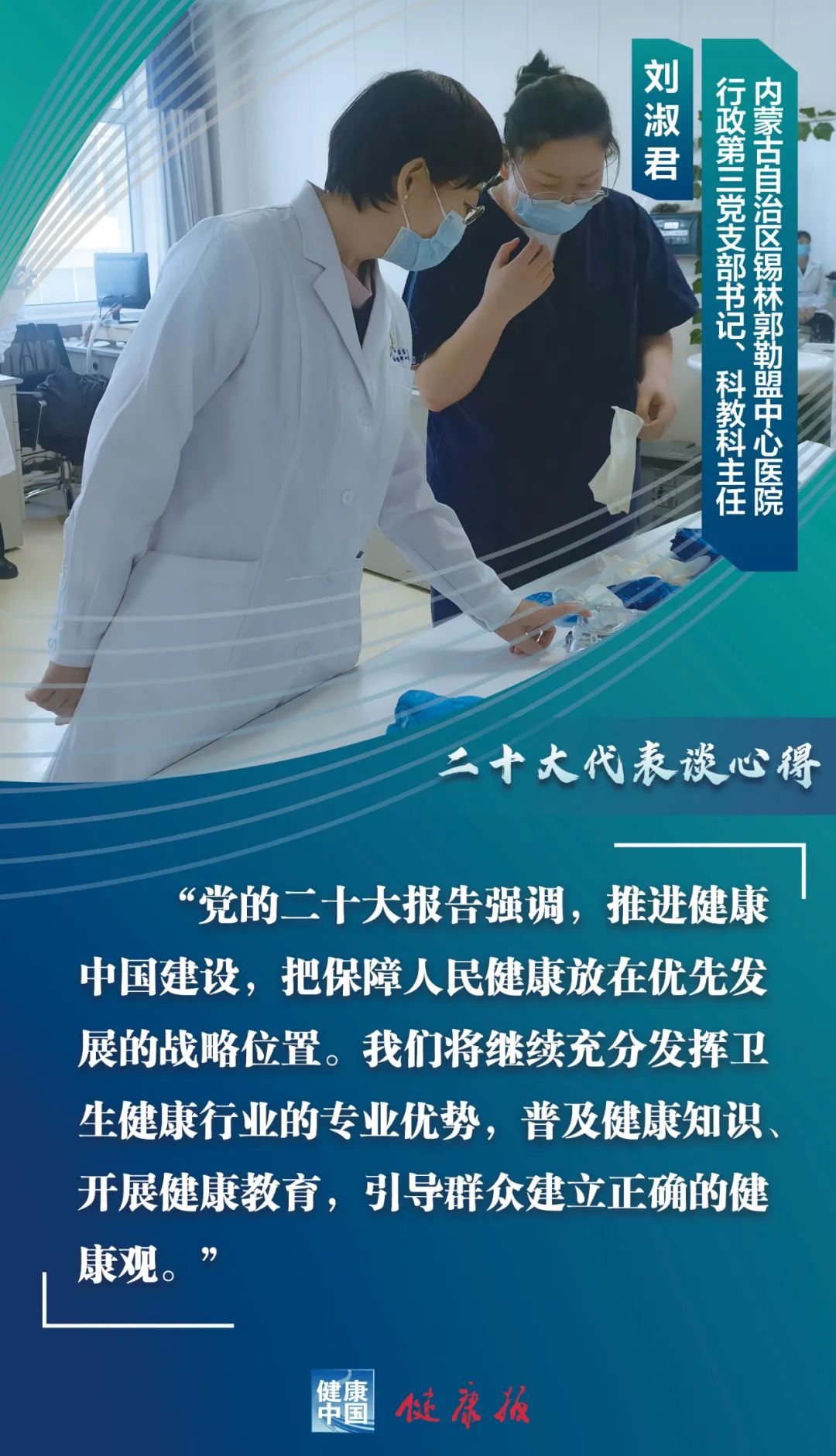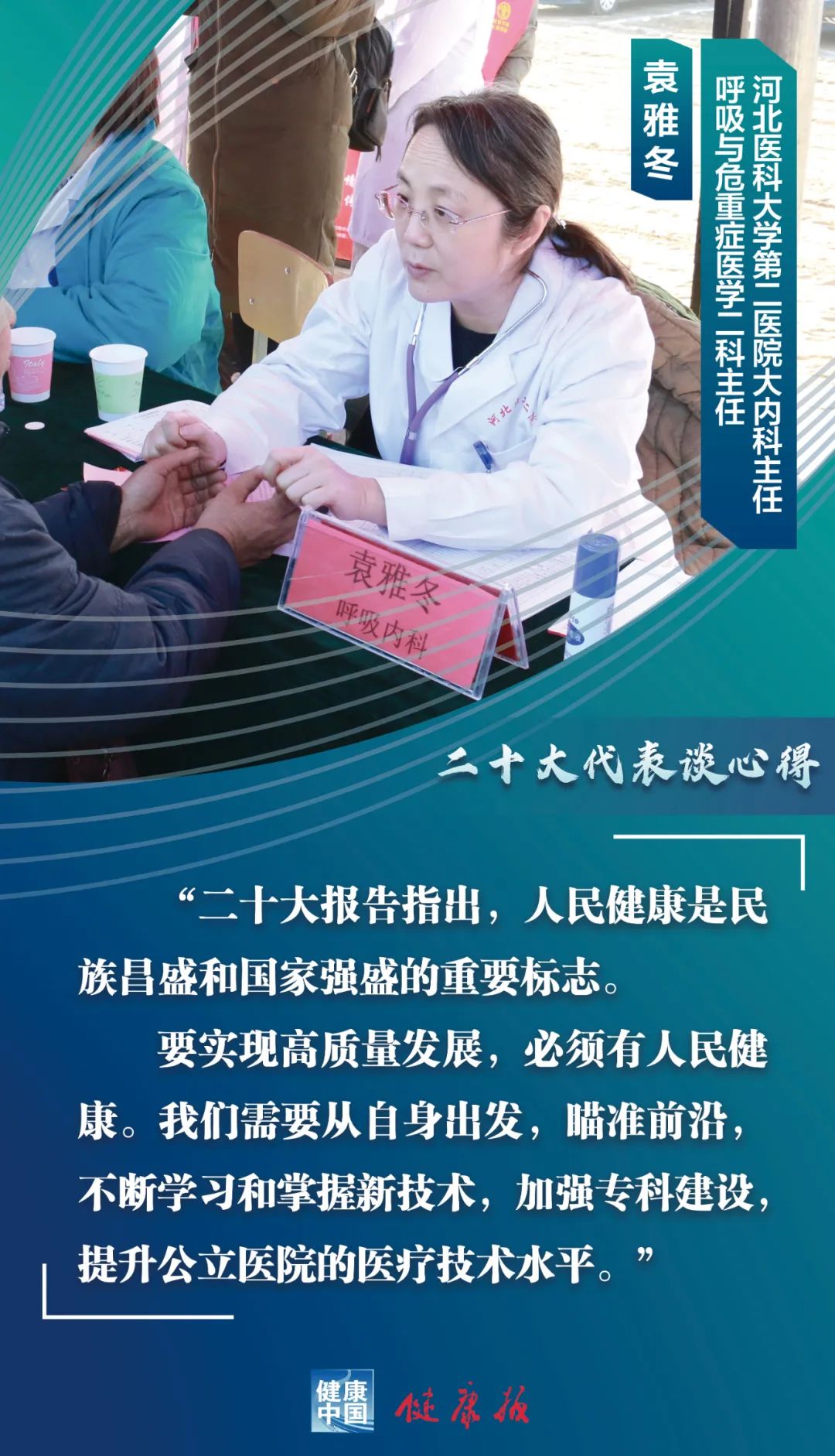 在卫生健康系统,学习宣传贯彻党的二十大精神正在掀起热潮。从党代会归来,卫生健康一线党代表们第一时间宣讲二十大精神,畅谈学习体会,纷纷表示,要以二十大精神为指引,踔厉奋发、努力前行,为建设健康中国、全方位全周期守护人民健康贡献更大力量。