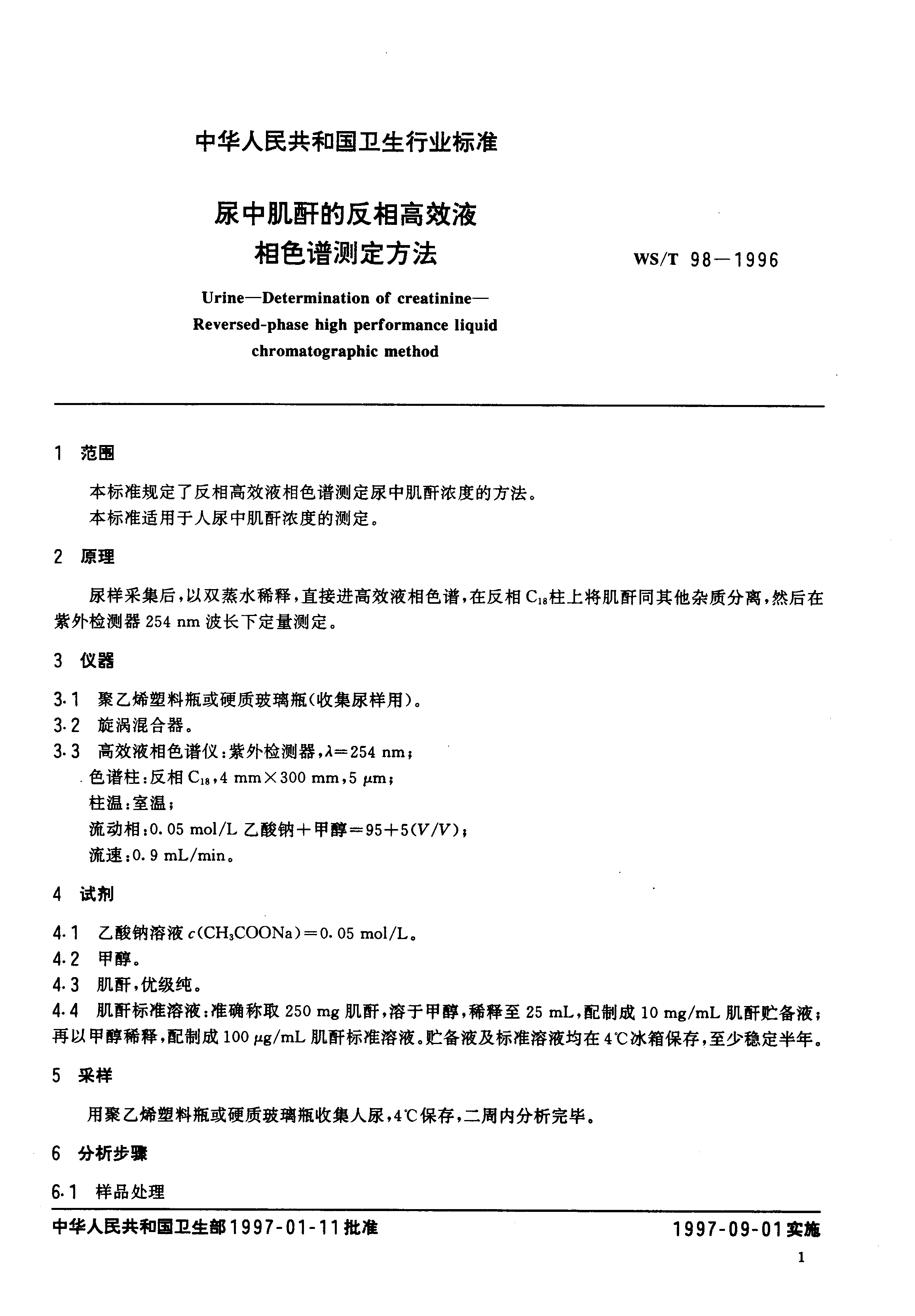尿中肌酐的反相高效液相色谱测定方法 下载: