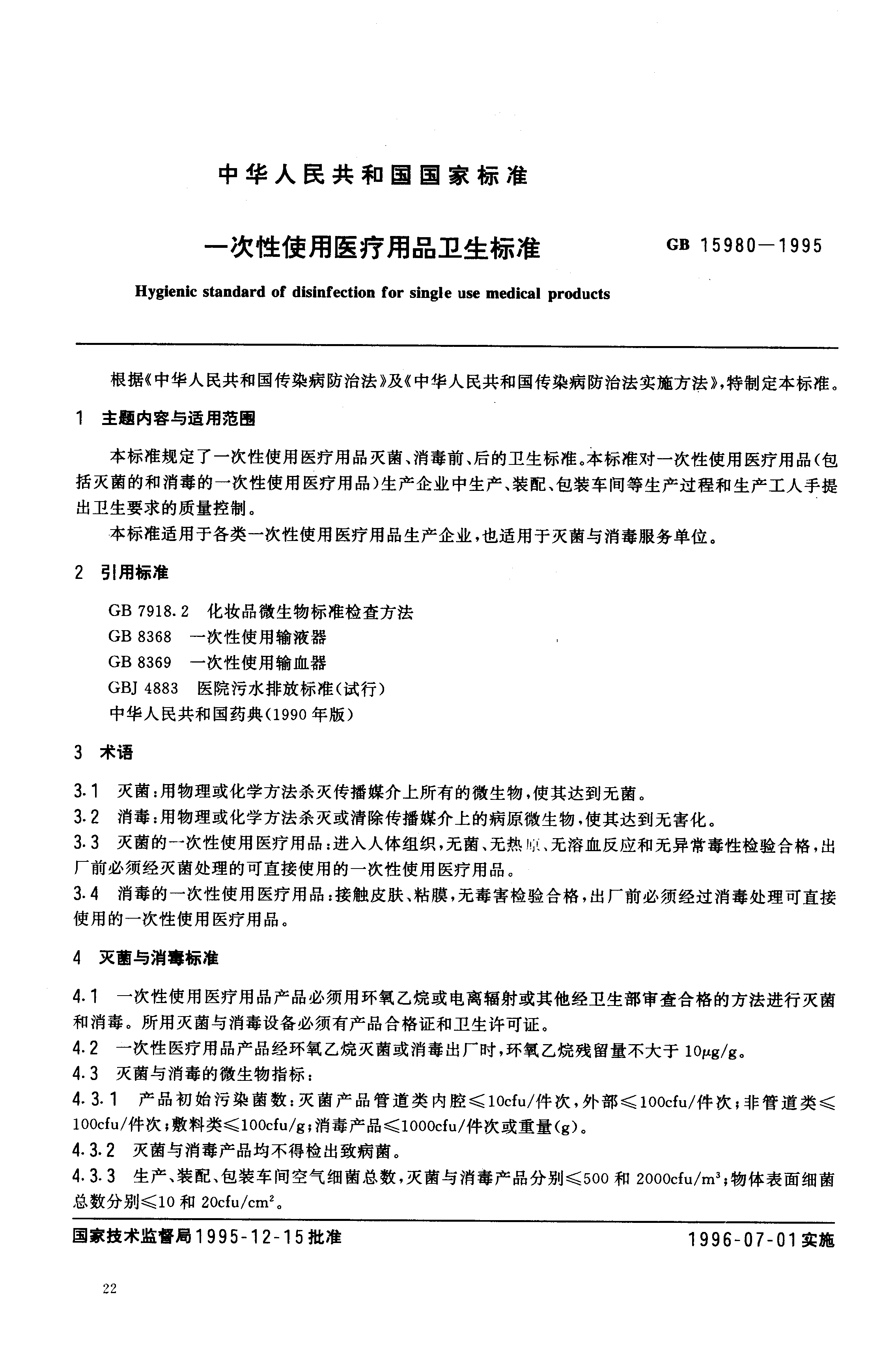 一次性使用医疗用品卫生标准 下载: