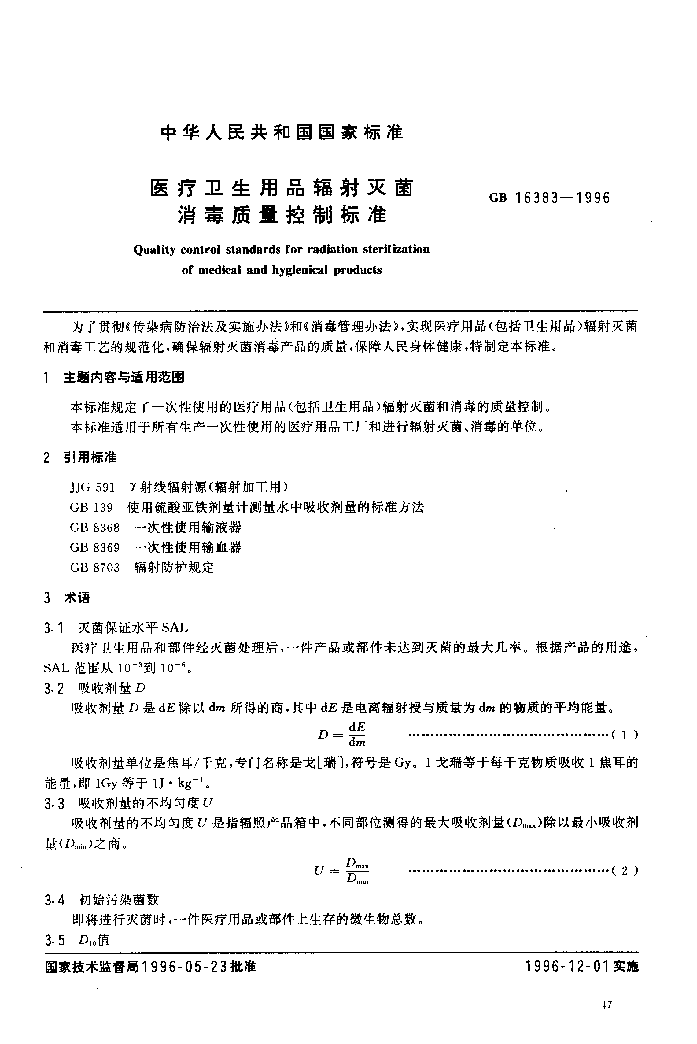 医疗卫生用品辐射灭菌消毒质量控制标准 下载: