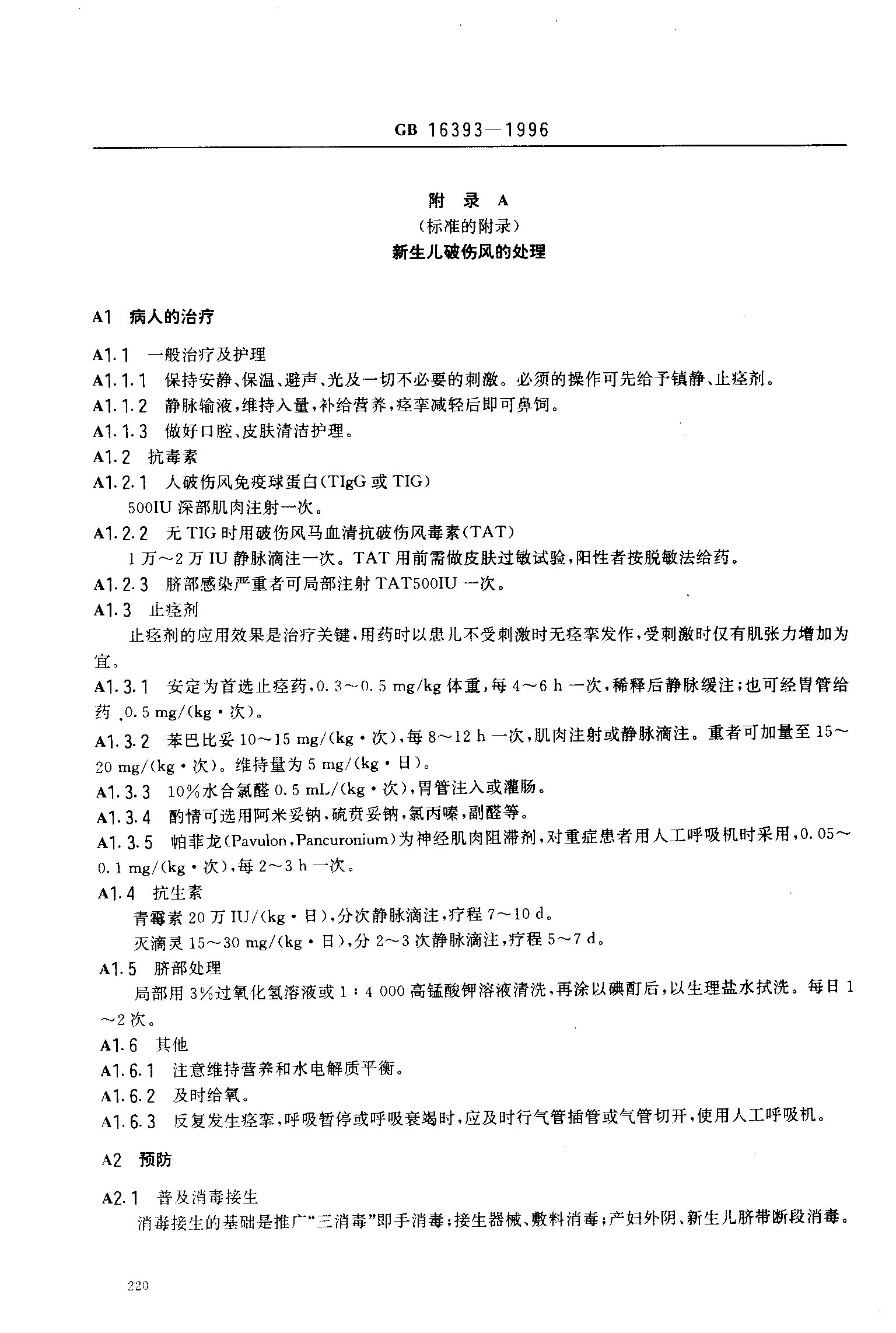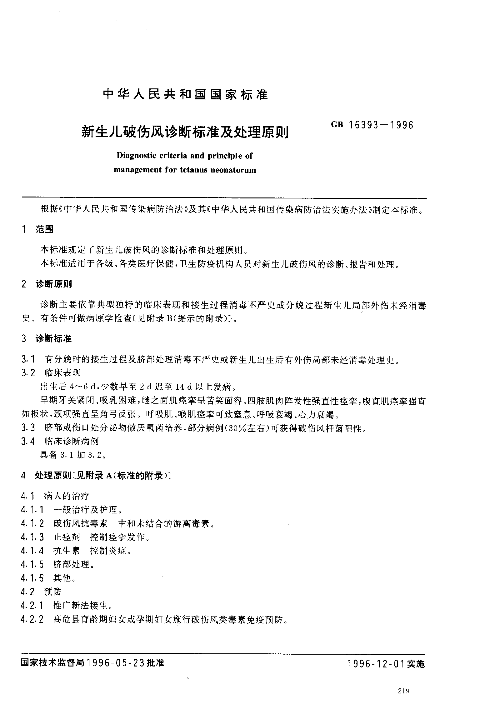 新生儿破伤风诊断标准及处理原则(已被代替)