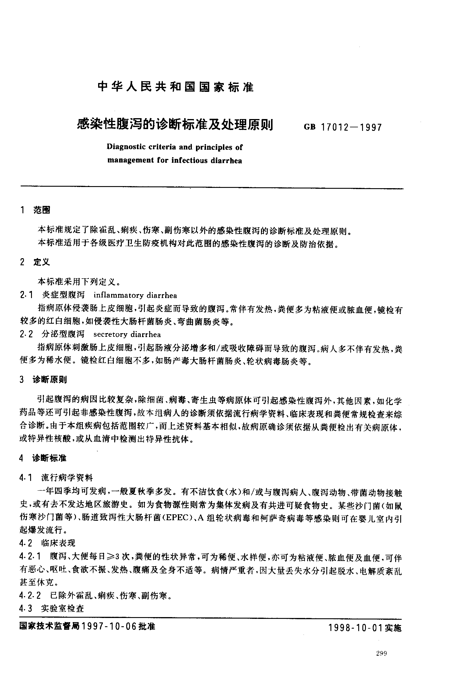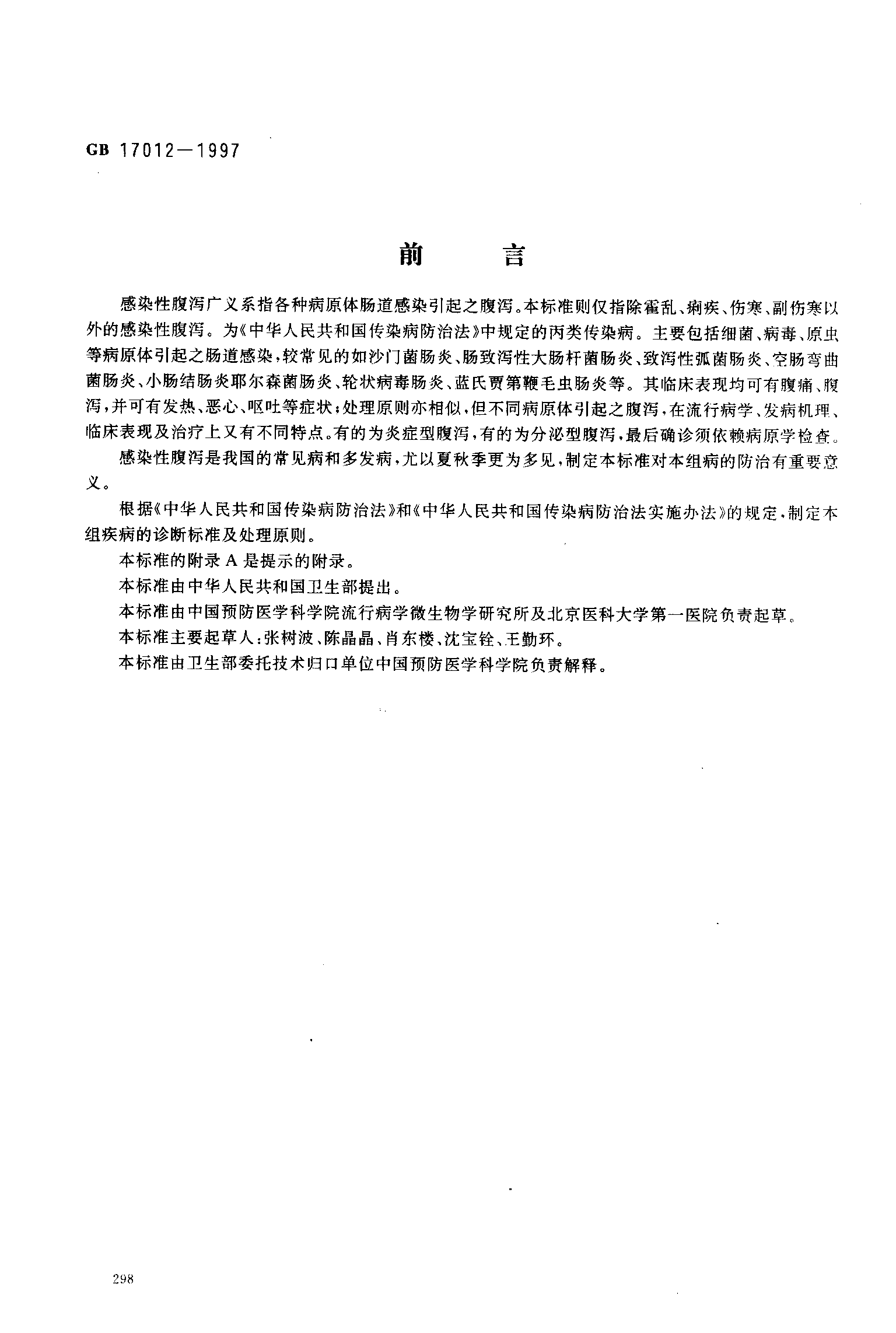 感染性腹泻的诊断标准及处理原则(已被代替)