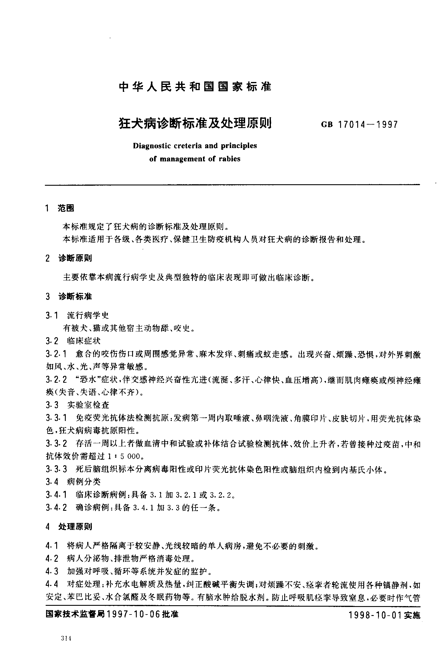 狂犬病诊断标准及处理原则 下载: