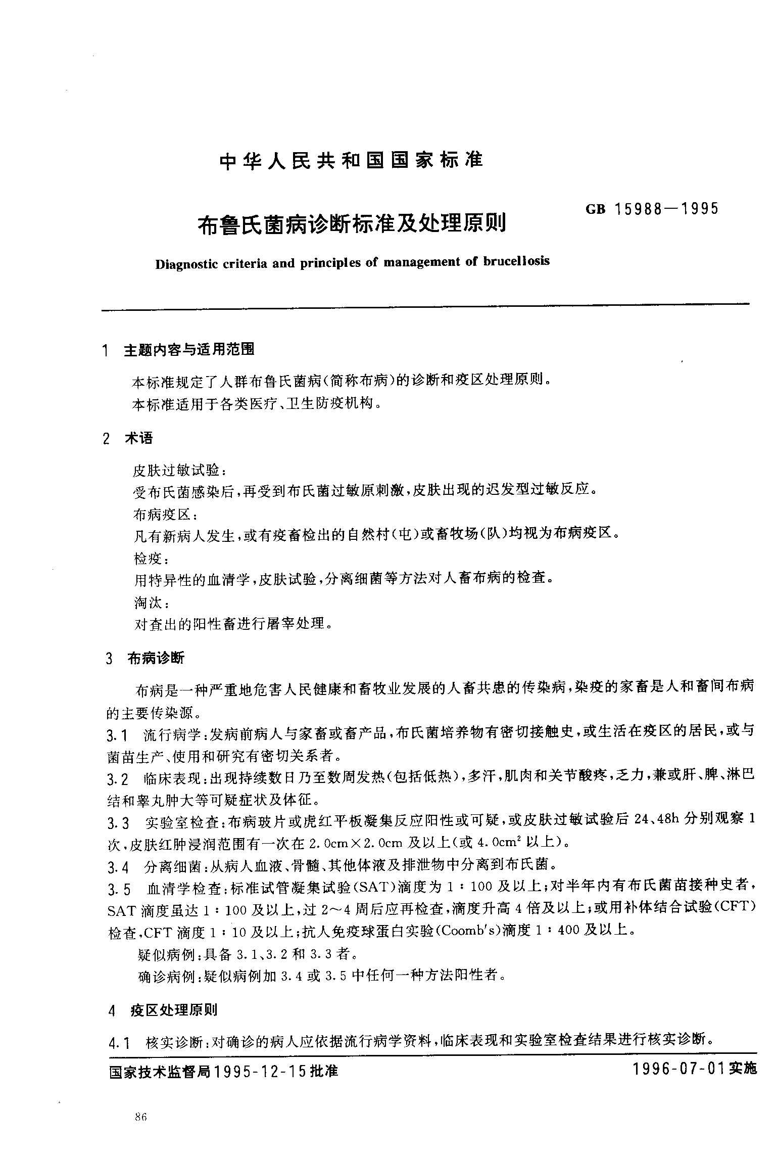 布鲁氏菌诊断标准及处理原则(已被代替)