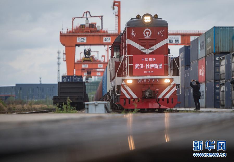 开往德国杜伊斯堡的中欧(武汉)班列从中铁联集武汉中心站驶出(2020年3月28日摄)