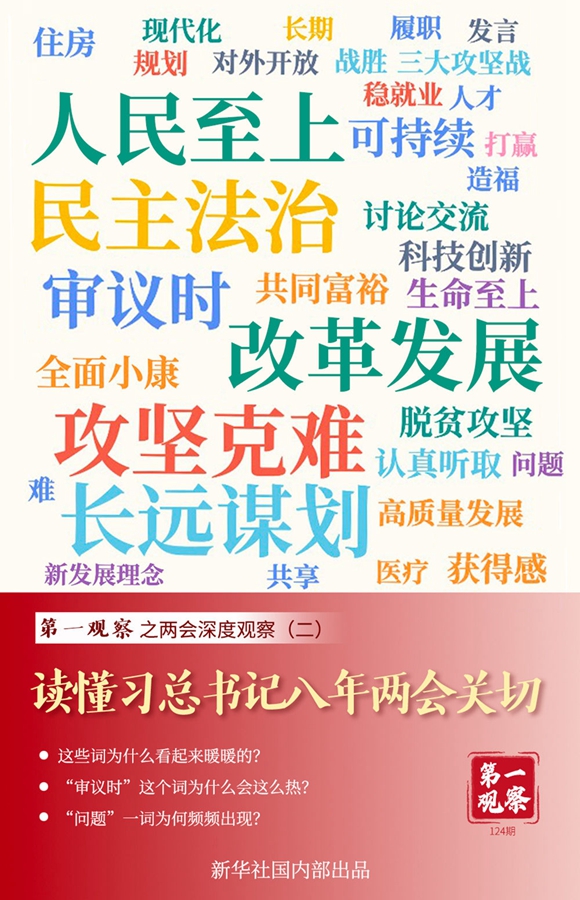 “去年有多少人娶媳妇儿”“农家乐办起来了吗”……与长期扎根一线的代表委员面对面,总书记热切询问百姓冷暖;“养老”“稳就业”“医疗”“住房”“社会救助”……着力解决人民群众最关心最直接最现实的问题,总书记把它放在最突出位置。