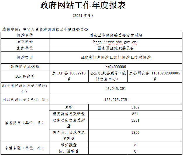 国家卫生健康委员会官方网站政府网站工作年度报表