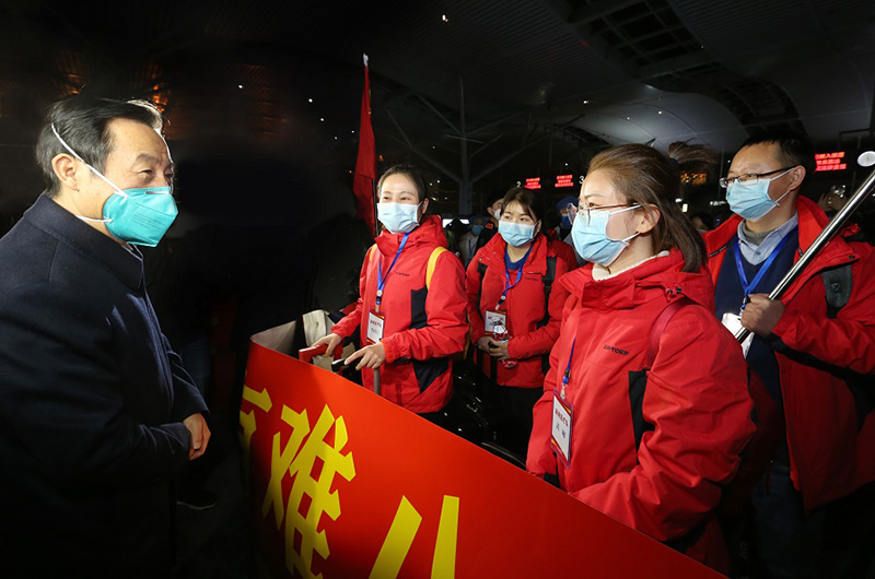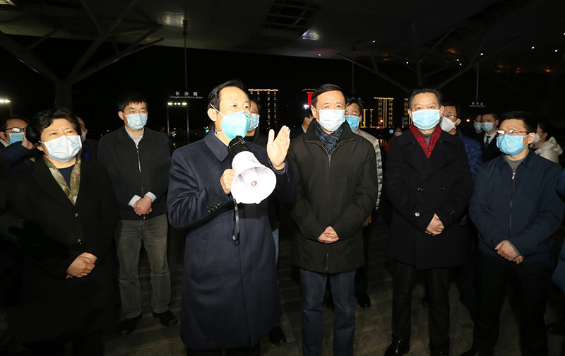 1月28日,湖南响应国家号召紧急向湖北派出第二批抗击新型冠状病毒感染的肺炎援助医疗队。省委副书记、省长许达哲来到长沙高铁南站为队员们壮行,随后召开省委疫情防控领导小组调度会。