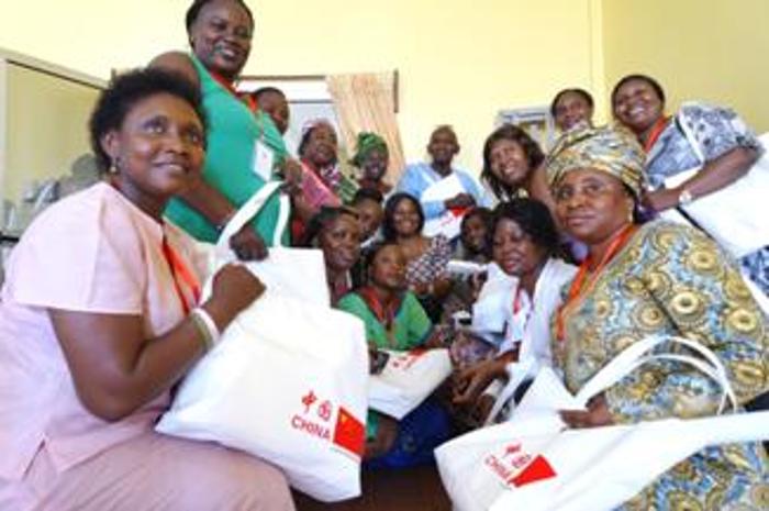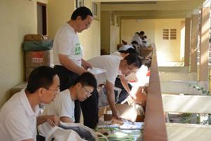 来自中国的援塞专家紧张有序地为培训学员组装培训包