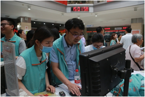 在联学联建活动中,北京大学人民医院王建六副院长向宣传司青年小组介绍了医院开展志愿服务的情况;北京大学人民医院社工部为宣传司青年小组代表分发志愿服装;青年小组接受了北京大学人民医院志愿服务培训并完成注册信息录入。随后,青年小组来到医院门诊大厅实地开展志愿服务,大家通过文明的语言、热情的服务,为门诊患者提供了就诊流程、挂号咨询、指引方位等服务,帮助解决患者遇到的实际困难。