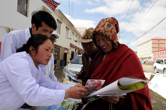 在果洛藏族自治州玛沁县玛多新村开展健康教育进农村进社区活动