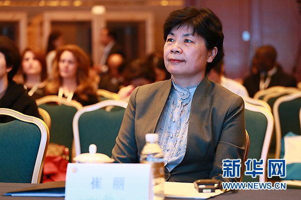 11月23日,在第九届全球健康促进大会“中医药发展”平行论坛上,嘉宾围绕“中医药促进人类健康”主题进行深入交流。图为国家卫生计生委副主任崔丽出席。新华网 杨锘摄