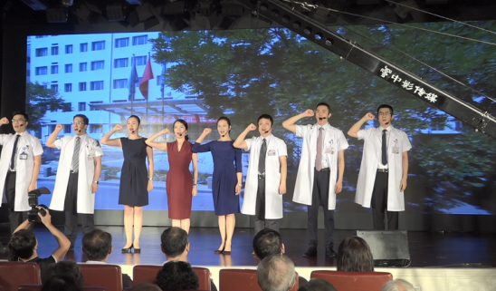 随后,宣讲活动大幕开启。在第一篇章《志在悬壶》环节中,普通外科许静涌的访谈《仁手初心》,展现了青年医生年少时励志从医和踏上医路后的情感与憧憬,在前辈指引和家庭温暖中砥砺前行的成长历程;神经外科杨希孟和神经内科刘慧菁这对医学伉俪通过《写给最亲爱的你》讲述了因医结缘、因缘而爱、因爱而伴的“医缘”故事;医院合唱团倾情演绎的北京医院医师版《我们都一样》,用优美的旋律为同道们送上温馨的祝福。在第二篇章《大医精诚》环节中,心血管内科李彭饱含深情地讲述了《心脏调音师》,把心血管内科主任杨杰孚教授“医者大爱”的职业精神展现得淋漓尽致;放射科导管室团队在余嘉的积极筹备和精心排练下,带来了《铅守健康 守护平安》,让大家领悟出比沉甸甸的铅衣更重的是医者的责任;由北京医院医学小伙伴演出的音乐剧《初心》赢得了阵阵喝彩。