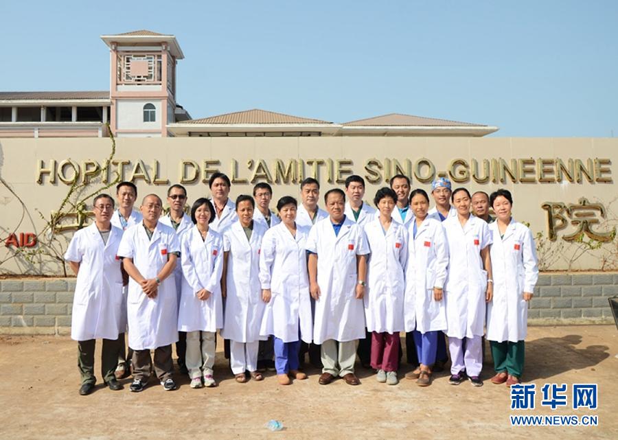 这是第23批北京安贞医院援几内亚医疗队在几内亚科纳克里的中几友好医院前合影的资料照片。新华社发