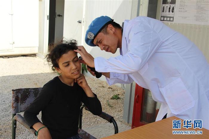 8月19日,在位于黎巴嫩南部的中国维和部队营地医院内,中国维和官兵在义诊活动中为当地居民进行五官检查。 19日,首个“中国医师节”当天,中国第17批赴黎巴嫩维和多功能工兵分队开放所属一级医院,开展“敬佑生命 大爱无疆”义诊活动,受到当地居民的称赞。 新华社发(杨双权摄)